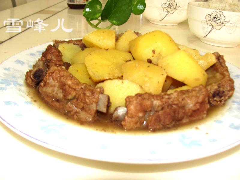 5:连汤汁倒入炒锅里,加入土豆炖煮。
