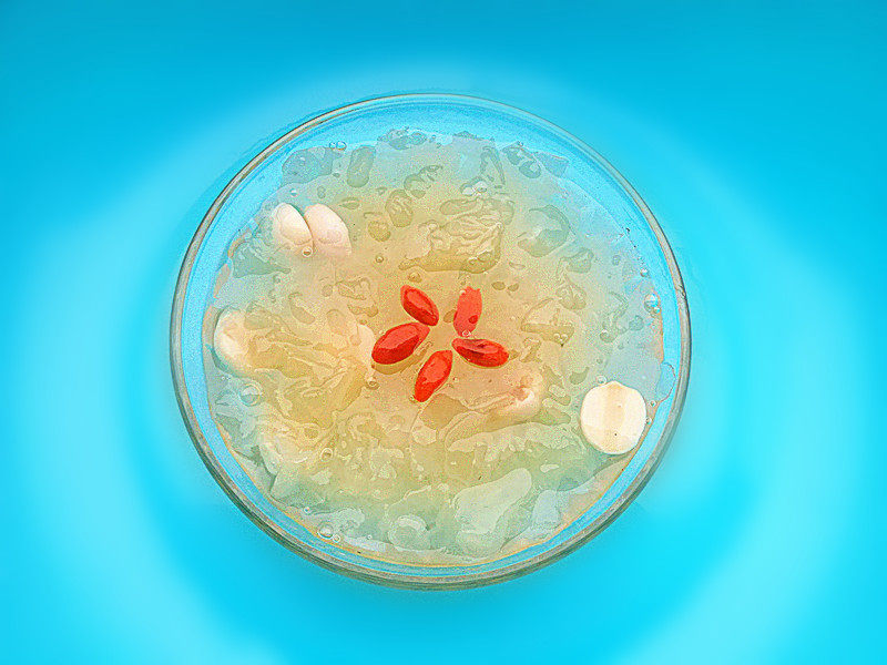 2:莲子二十余粒早于银耳前一小时浸泡,最好去芯,以免甜汤泛苦。