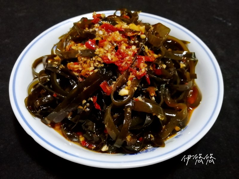 2:碗里加入所有调料拌匀,热油浇入调料中,再全部倒入海带上面拌匀即可。