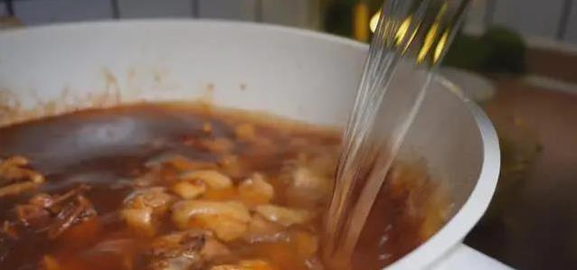 接着倒入开水,没过鸡肉。一定要用开水,冷水会让鸡肉变柴。搅拌均匀,大火烧开后转小火,盖上锅盖焖30分钟。焖的时候,汤汁会慢慢渗进鸡肉,香味也越来越浓。