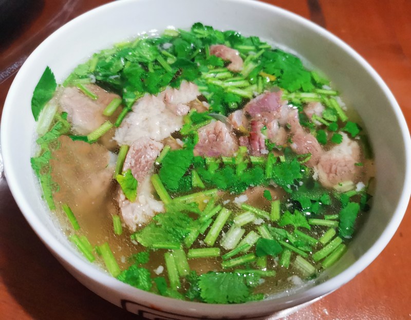 6:撒上香菜末,可根据个人口味加入醋和胡椒粉。
