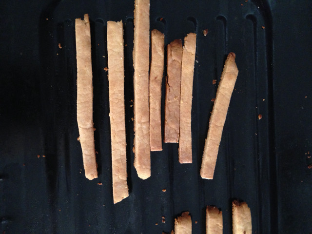 6:切成条,上下火150度烤10分钟