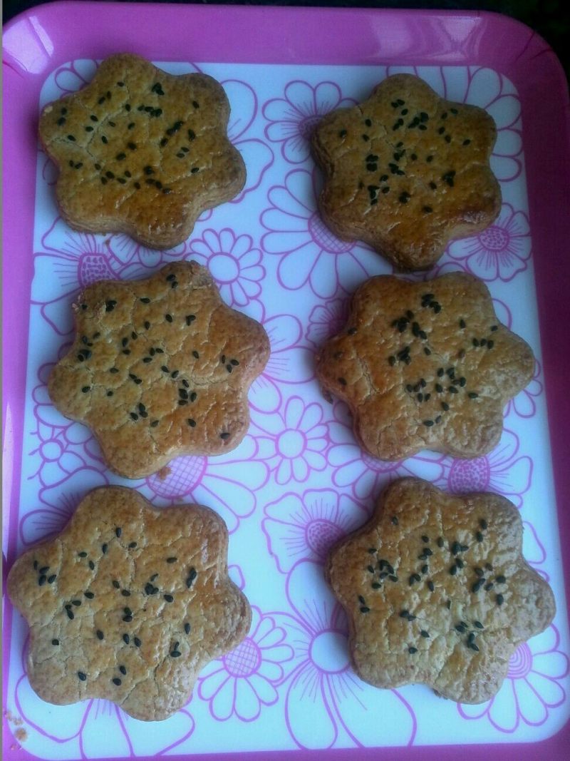 7:烤箱180度预热,160度,中层烤27分钟关火,用余热再烤一会儿取出。晾透以后,松酥可口。