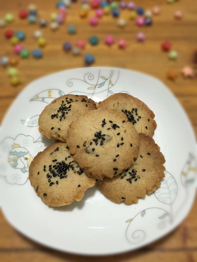 核桃碎20克;泡打粉2克;小苏打1克;黑芝麻10克;