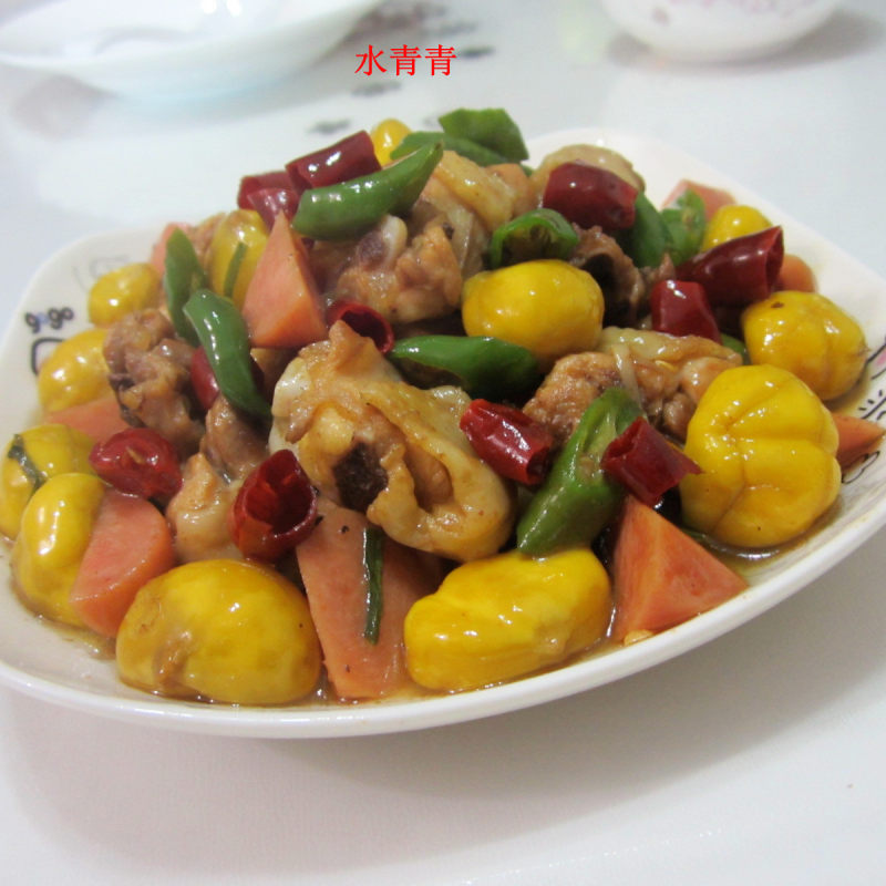 1:鸡肉,板粟,辣椒。