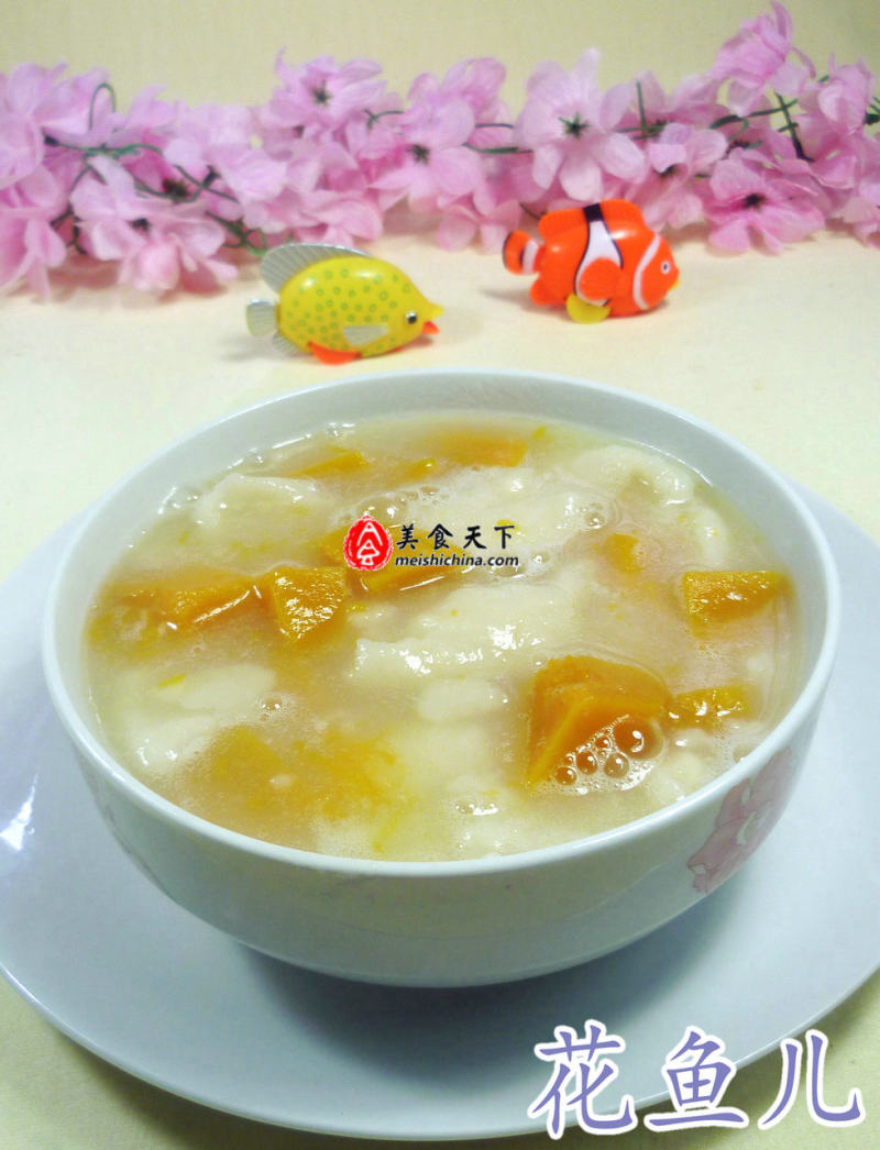 5:随后,将切好的南瓜下入清水锅中煮开,煮上4——5分钟。