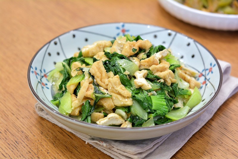 油菜炒豆腐泡