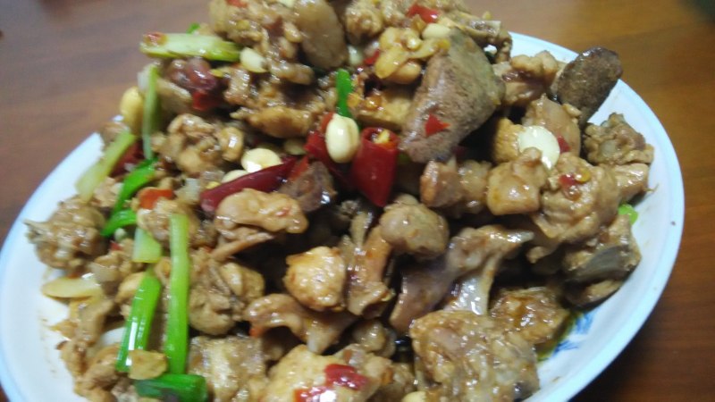 Ps:1、如果有青花椒和小米椒就放进去,青花椒和美人椒的味道混合在一起很有特点。2、兔肉尽量切小一点,很快就会炒干,而且也容易入味儿。3、炒兔丁的时候用中小火,多炒一会儿,我个人觉得把水分炒出来成品才会干香。4、调味汁的比例要根据食材的多少来定。