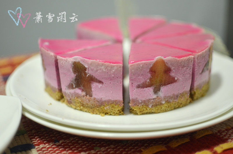 20:然后,把拌匀的奶油火龙果混合液倒入模具,冷藏。