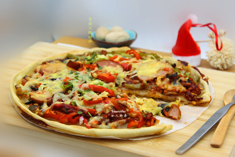 1.酵母建议用即发酵母就不需要等待;2.面饼食材可根据自己喜欢的放;3.如果要放辣椒,建议用彩椒好看也不辣;4.食材配方为9寸烤盘。