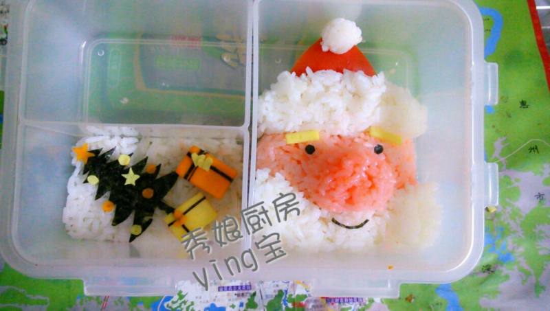 11:将海苔片衬在盘子底部,雪人坐在上面即可。