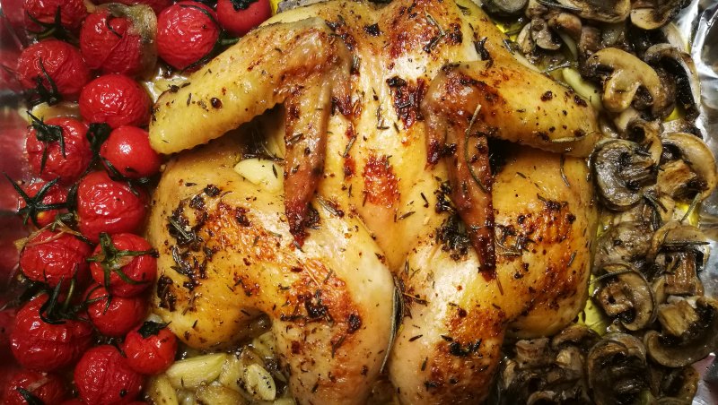 用童子鸡,你一定要用童子鸡,必须是要用童子鸡,重要的事情说三遍。烤箱的温度也是要根据每家烤箱实际情况不同,以及鸡的大小,适当调整温度与时间。