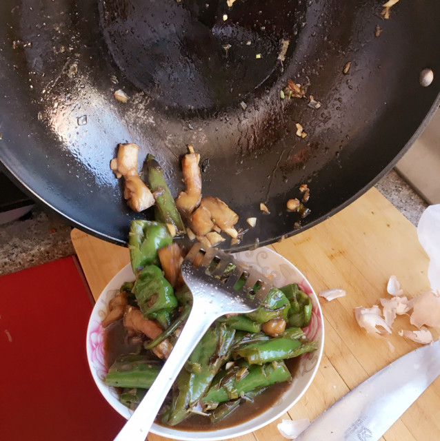 6:中火青椒煸至虎皮发软成出待用