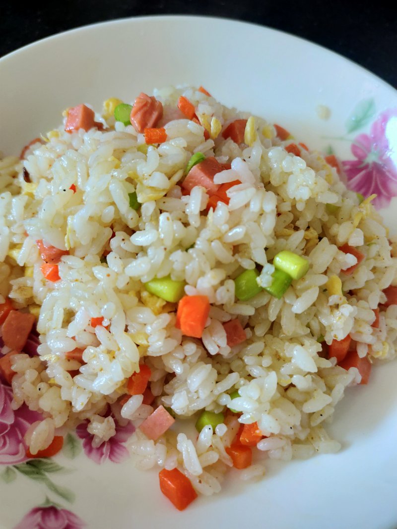 1、剩米饭放入微波炉,转小火盖上盖子焖1分钟,这样米饭就很容易炒散了。炒出的米饭粒粒香。2、胡萝卜为溶脂性蔬菜,炒制时可以先下锅。3、很多网友提问家里没有五香粉怎么弄,其实大家可以用方便面的调味包来炒菜炒米饭,这样很方便