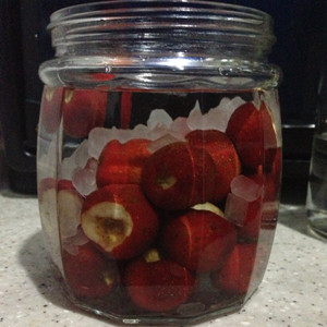 泡1-2个月之后,山楂酒也算是做好了,开瓶之后记住将山楂酒放在阴凉处哦,而且要封住瓶口。又或者放在冰箱里保存。冬天喝山楂酒的话,温度比较低哦,也可以煮热之后喝上一小杯,感觉身体都温暖了呢。偶尔来杯山楂酒,也是极暖的。