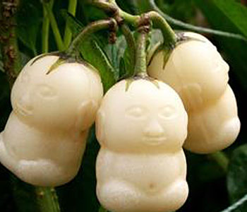 有研究人员表示,正常的人参果果实形状多似心脏形和椭圆形,成熟时果皮呈金黄色,有的带有紫色条纹。而那些人形的人参果是经过人工处理的,即在人参果幼果生长时便将果实套在制作成人形的模具中,使其按照模具的形状生长出来。
