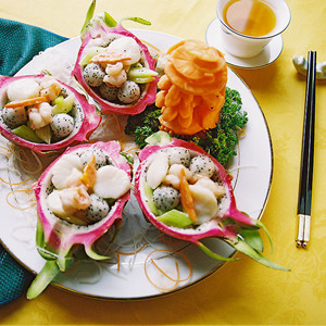 做法:将火龙果去皮切块,乌梅去核,青瓜块和糯米糕放入火龙果容器中,加入适量蜂蜜调味即可。不仅开胃消食、营养丰富,而且减肥效果非常好。