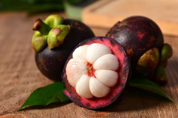 山竹不仅味美,而且营养价值非常高,经常食用对身体有很多好处。山竹果实大小如柿,果形扁圆,壳厚硬呈深紫色,由4片果蒂盖顶,酷似柿样。果壳甚厚,较不易损害果肉。果皮又硬又实,用筷子敲之“梆梆”有声,剥开其壳,便见七八瓣洁白晶莹的果肉,酷似剥了皮的大蒜瓣儿,相互围成一团。山竹果肉雪白嫩软,味清甜甘香,带微酸性凉,润滑可口,解乏止渴,生发补身,为热带果树中珍品,有果后之称。