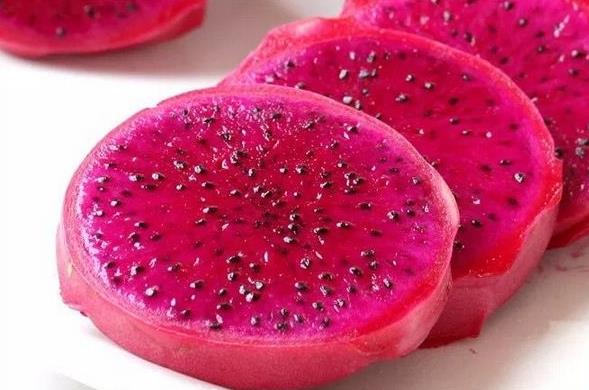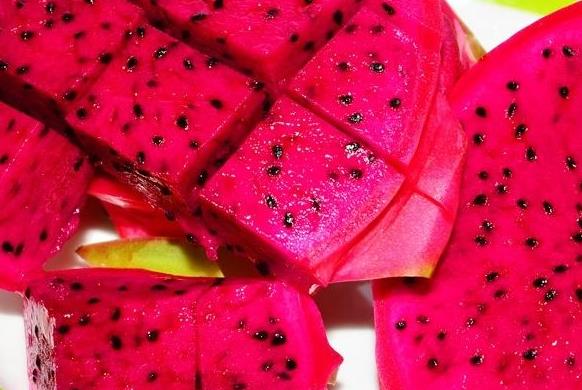 3、火龙果富含美白皮肤的维生素C及丰富的具有减肥、降低血糖、润肠、预防大肠癌的水溶性膳食纤维。