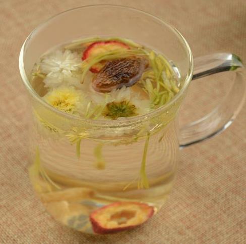 做法:白菊花2克、枸杞子4克、西洋参3克、炙黄芪4克,泡水饮用。