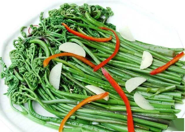 蕨菜中的蕨菜素对细菌有一定抑制作用,具有良好的清热解毒、杀菌清炎功效。