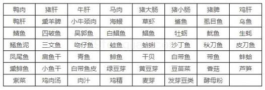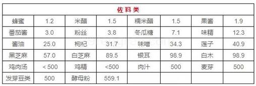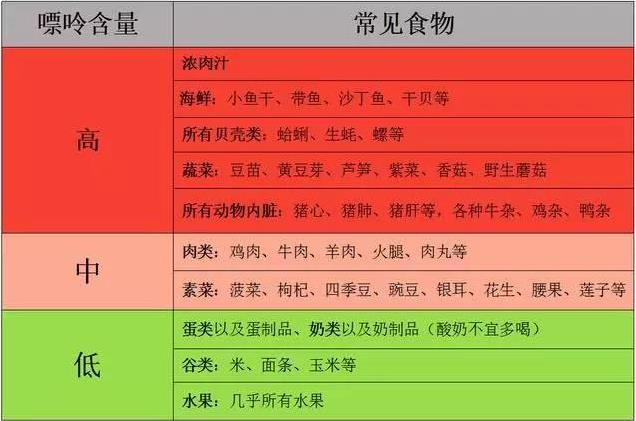 嘌呤含量简表