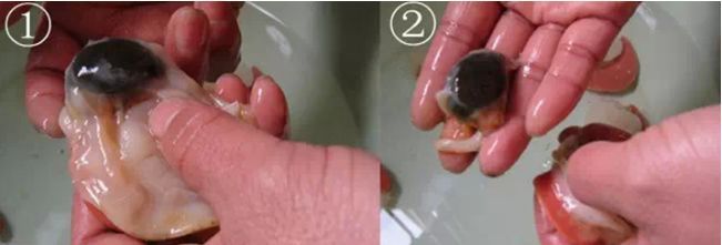 第一步:把尾部最外面两个小脚拧断,然后捏着尾部轻轻往上一折,再拧掉。