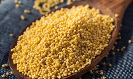 小米的淀粉含量高(约70%),是一种能量食物。和其他谷物一样,小米中钙、维生素A、维生素D、维生素C和维生素B12含量很高。蛋白质含量在不同类型的小米中变动很大,一般介于5%—20%之间,平均为10%—12%。小米中蛋白质的质量常优于小麦、稻米和玉米,但是必需氨基酸中的赖氨酸含量低。