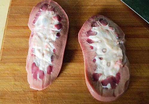 猪腰子是猪的肾脏部位,具有很好的壮阳补肾的功效,但猪腰子内部还有猪的肾盂和神纤维素,这部分是猪肾脏的滤尿器官,很有很重的尿骚味,而且还含有肾上腺,需要去除。猪的肾上腺含有大量的皮质激素和髓质激素,有毒性,所以在处理猪腰子时要仔细去除。