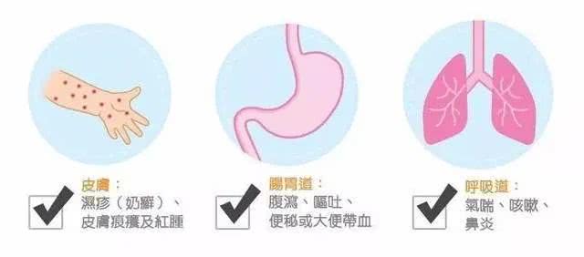 牛奶蛋白过敏主要有三大症状。