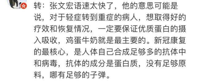 就近期张文宏鼓励大家多喝牛奶、少吃粥引发的争议,张文宏用实际案例作出回应。他表示,上海的输入性病例中,营养良好的年轻人都没有转为重症,但一些国外打工回来的人,在路上没吃好、没喝好,整体的营养状况非常差,因此病情发展较快。基于这一点,张文宏认为,充足的营养对控制疾病进展极为重要。“如果有足够的身体资本和免疫力资本就可以扛过去。”张文宏说,营养成分通常分三种:蛋白质、脂肪、糖。在这次抗疫中,蛋白质是第一位的,因此他推荐大家多吃鸡蛋和牛奶。