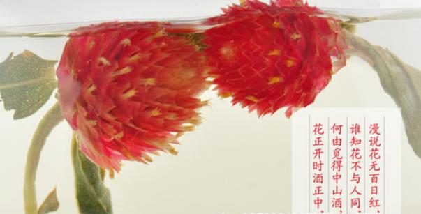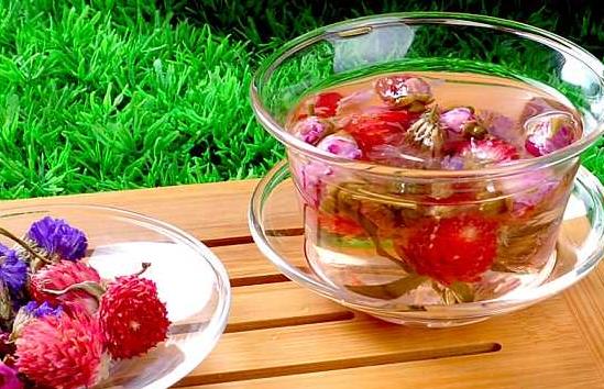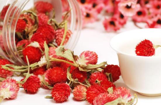 3、玫瑰5朵、千日红5朵、红巧梅5朵、蜂蜜或冰糖适量,以痛经的女性每月例事前一周冲泡饮用,有舒经止痛的作用,如能长期饮用效果更佳。