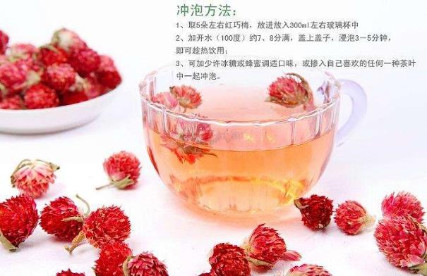 红巧梅是千日红的一种,俗称妃子红,花朵更加红艳,历代宫廷作为必备贡品。红巧梅具有很高的保健价值,功效很多,用来泡水饮用能够调理身体健康,是绿色健康的茶饮。那么,红巧梅花茶的功效与作用是哪些?喝红巧梅花茶的禁忌有哪些?下面,和华夏美食网一起了解一下吧!