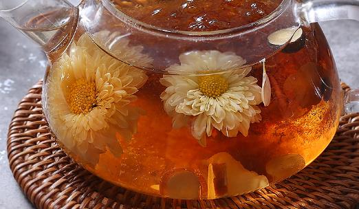 菊花茶,是一种以菊花为原料制成的花草茶。菊花茶经过鲜花采摘、阴干、生晒蒸晒、烘培等工序制作而成。据古籍记载,菊花味甘苦,性微寒,有散风清热、清肝明目和解毒消炎等作用。菊花茶起源于唐朝,至清朝广泛应用于民众生活中。菊花起源于中国,有2500多年的栽培历史,品种达到3000以上,是我国种植最广泛的一种传统名花,除了做园林观赏外,以药用菊花和茶用菊花占较大比例。根据记载,唐朝人已开始有喝菊花茶的习惯。那么,菊花茶有哪些功效及作用,喝菊花茶有哪些禁忌?下面,和华夏美食网一起了解一下吧!