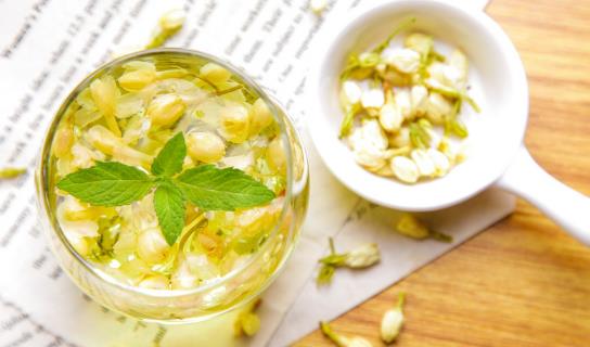 茉莉花、薄荷叶、桂花冲泡而成,具有缓解胃痛,恢复食欲的功效。